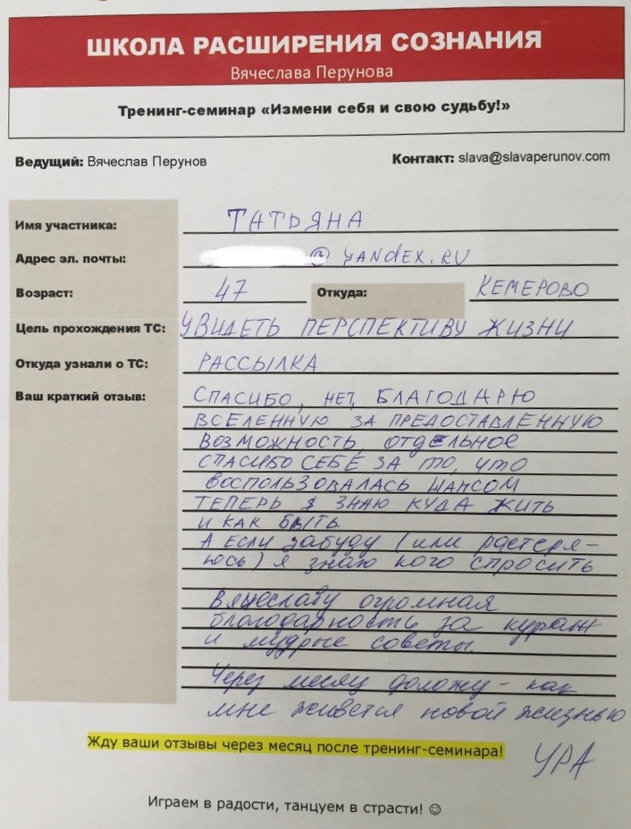 Для тех, кто не имеет возможности посетить семинар — у вас есть КУРАЖ — дистанционный курс, по эл почте возможность расстаться со своей проблемкой. Результаты 100% у всех, кто не сходит с дистанции.